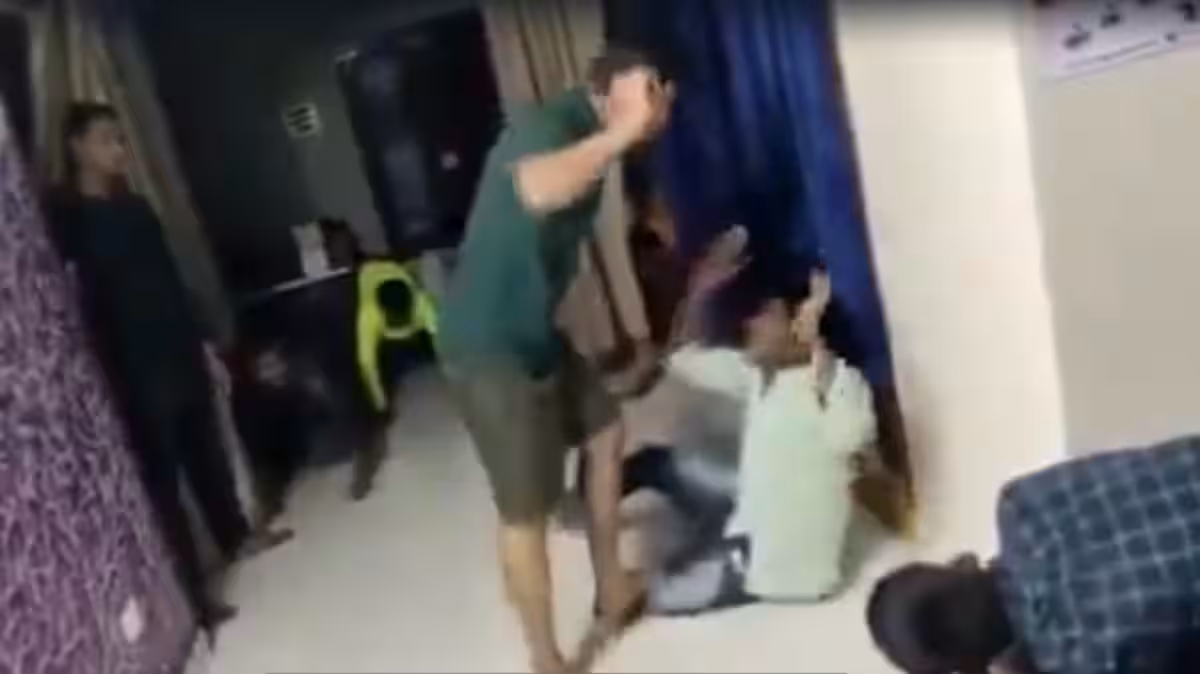 The video captures Ramana whipping a student with a belt as the boy cries and tries to shield himself. In the background, two more students are seen kneeling on the floor, visibly terrified. A man in a black T-shirt watches the abuse silently, further intensifying the scene’s grimness. According to reports, the video dates back to December last year, but it has only recently come to light, raising serious concerns about the safety and environment in private coaching institutions.