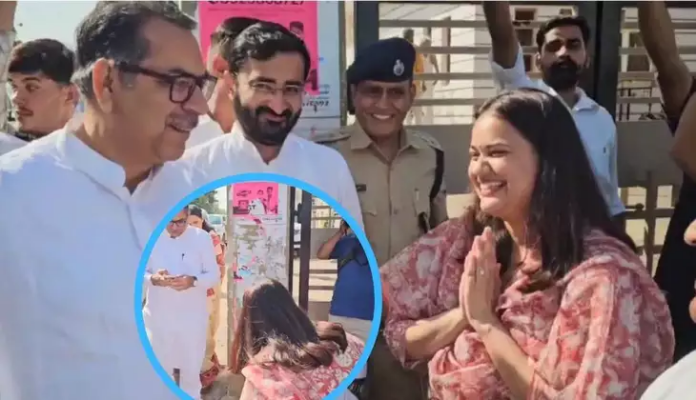 The video in question captures a brief yet intense moment where Tina Dabi is seen greeting Satish Poonia, a key BJP figure who once served as Rajasthan’s state president and currently oversees party operations in Haryana. In the video, Dabi’s repeated bows to Poonia, meant as a gesture of respect, are met with praise from the BJP leader. Poonia is heard complimenting her work in Barmer, comparing it to the remarkable transformation of Indore. He remarks, “Barmer will become just like Indore. You are doing good work.”