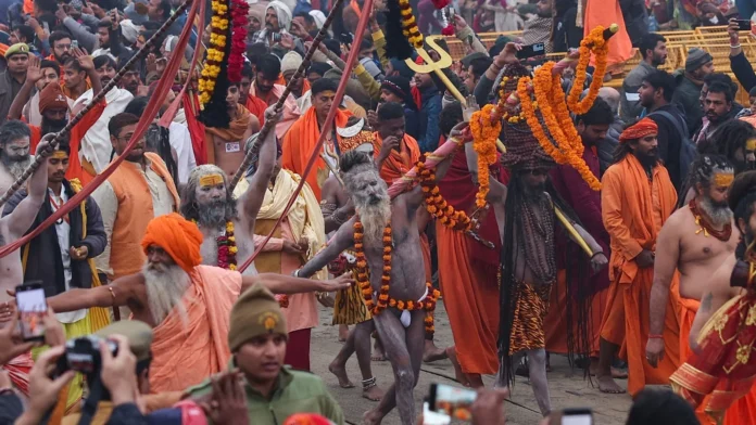 The 13 akharas were allotted specific time slots for their sacred dip to ensure smooth coordination. The bathing schedule was organized as follows:
