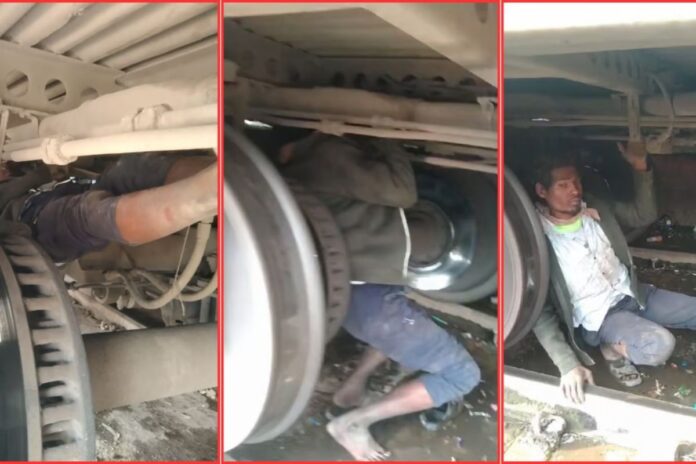 In a shocking incident from Madhya Pradesh, a man traveled 290 kilometers hanging precariously beneath a coach of the Danapur Express. The man was discovered during a rolling test conducted near the Jabalpur railway station on Thursday. He had reportedly boarded the train at Itarsi and managed to cling to the trolley beneath the S4 coach for the entire journey.